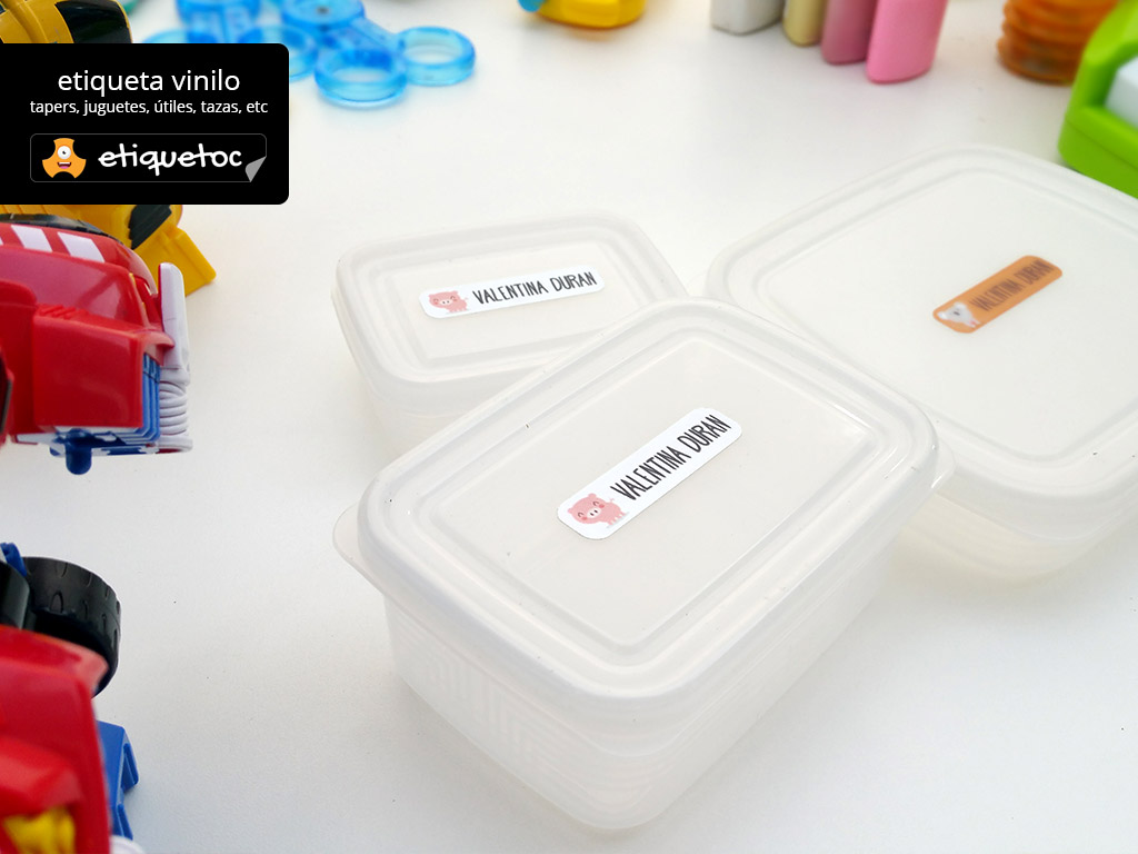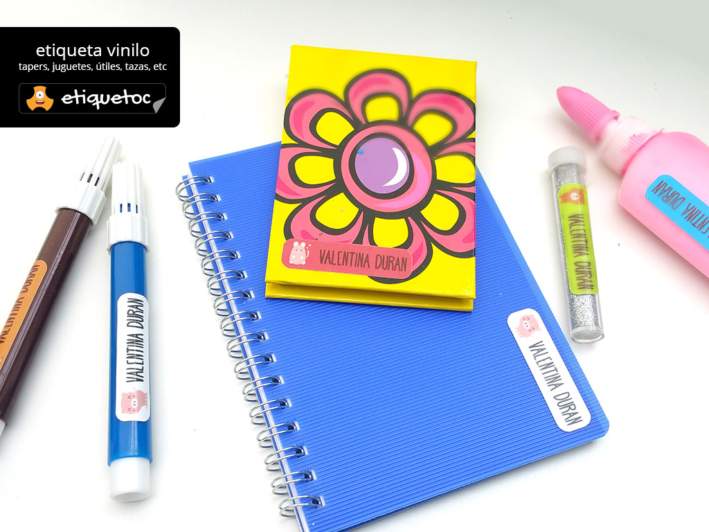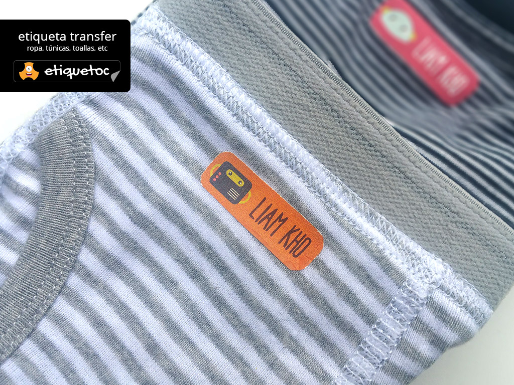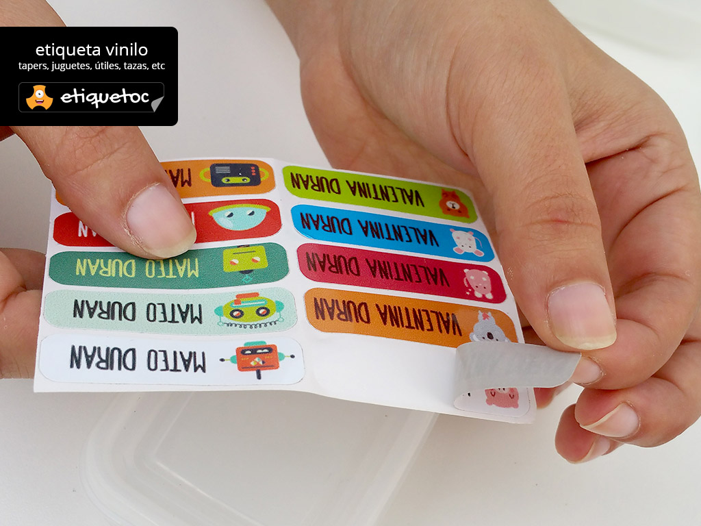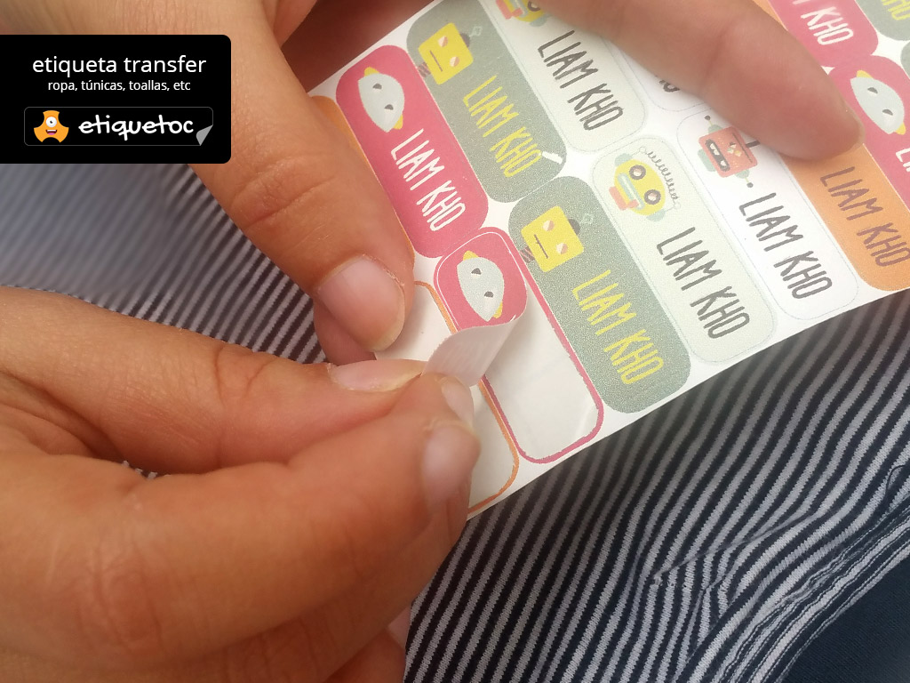 Las etiquetas son de dos tipos, vinílicas laminadas para en útiles escolares, loncheras, cuadernos, zapatillas etc y transferibles para utilizar en ropa, delantales, bolsos, etc.
